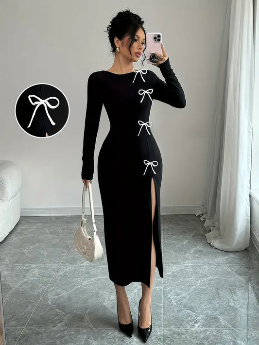 Bow Detail Bodycon Slit Dress – Q21559B - 6pcs