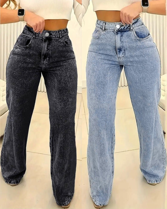 High-Waist Straight-Leg Washed Jeans- FA-4440